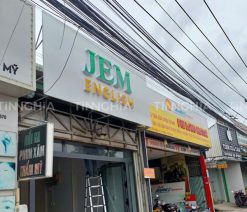 - Chữ mica nổi gắn trên nền alu – tạo độ tương phản cao, tăng nhận diện thương hiệu.