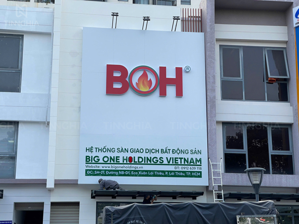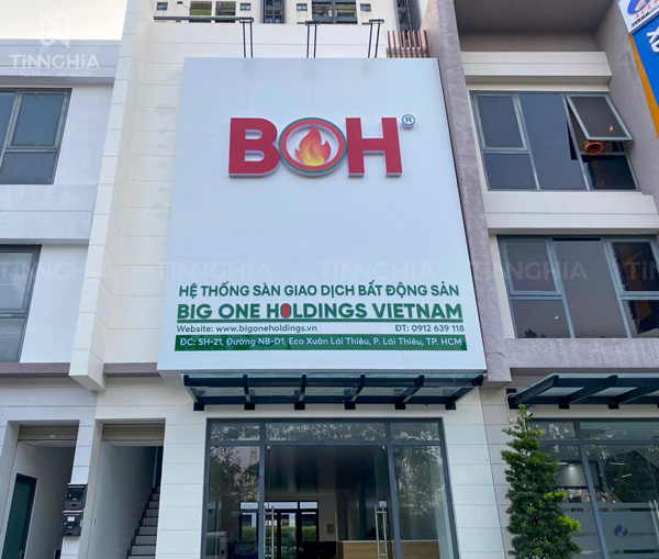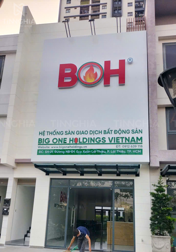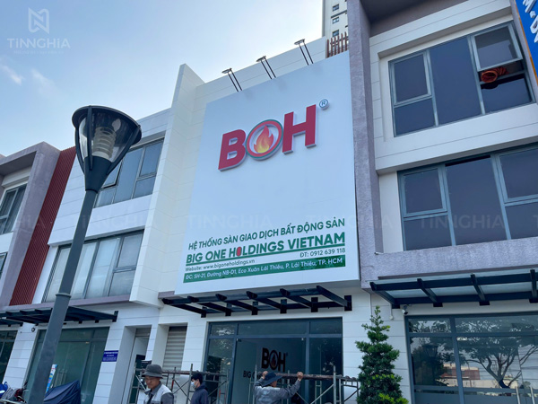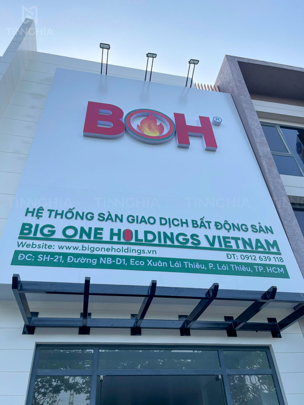 Tín Nghĩa vừa hoàn thành dự án ốp mặt dựng alu Thuận An cho doanh nghiệp BIG ONE HOLDINGS (BOH) mang đến diện mạo chuyên nghiệp, hiện đại với thiết kế tối giản nhưng nổi bật. Hệ mặt dựng ốp alu bảng hiệu kết hợp chữ nổi mica LED và logo in UV giúp tăng nhận diện cả ngày lẫn đêm.